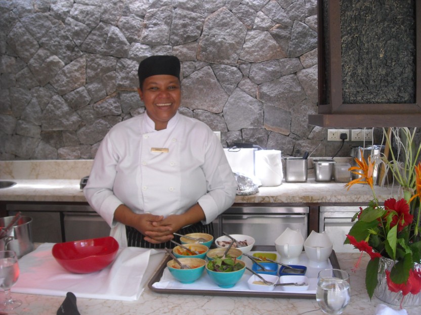 La ristorazione affidata a un executive chef indiano è decisamente uno dei punti di forza, con il ristorante Zez dai sapori mediterranei, usato anche per la prima colazione a buffet, con una terrazza alta in bellavista. A bordo della piscina vicino alla spiaggia il ristorante Kannel, nome creolo della cannella, ha un’atmosfera più informale. Qui si tengono anche interessanti minicorsi di cucina creola, per piccoli gruppi fino a 8 persone. Sotto l’attenta guida della chef Sherla si prepara un antipasto, un piatto principale e un dessert assaggiando subito il risultato del proprio lavoro. Il menù-tipo dal sapore gustoso si compone di insalata di polipo creola, ottenuta tagliando il polipo in pezzettini minuti, passando a bollitura con panna, papaia, polvere di zenzero, zafferano e un bastoncino di cannella. Dopo aver lasciato raffreddare, si guarnisce mescolando con cipolla, pomodori, un pizzico di lattuga, chili, miele, aglio, buccia di limone, pepe nero, sale e olio d’oliva. Il piatto principale è un curry di pesce creolo. La padella va scaldata a fuoco basso aggiungendo cipolla, aglio, zenzero, foglie e polvere di curry, sale, pepe, polvere di chili o chili fresco, zafferano, pomodori e coriandolo. Prima di aggiungere il pesce è la volta del latte di cocco accompagnato da foglie di cannella. A questa salsa si aggiunge per alcuni minuti il pesce già fritto a parte, e successivamente si guarnisce con pezzetti di banana e melanzana fritta, nonché coriandolo fresco e succo di limone. Come dessert infine si preparano le frittelle di banana, mescolando uova e zucchero e aggiungendo la farina, latte e banana fino a formare un impasto da friggere poi nell’olio bollente. La soddisfazione di aver imparato a cucinare con gli ingredienti della saporita cucina creola è davvero impagabile.
