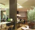 In linea con la strategia dell’albergo, il ristorante si chiama “Orto”: grande attenzione anche ai dettagli e alla tavola, con tovagliette e cestini per il pane in cellulosa riciclata e riciclabile. Il bar, al centro della lobby, è realizzato in marmo grigio dall’effetto seta e in legno. Il menù è suddiviso in sezioni e si apre con le “proposte dell’innovazione”, tra cui una spettacolare crème brulée al bagoss, il battuto di tonno al coltello, il polpo arrostito in padella, i passatelli di brodetto in pasta di salame, i casoncelli al burro spumeggiante ella salvia, il galletto cotto al mattone e il filetto di rana pescatrice in crosta d’erbe. Nella sezione “evergreen” si trovano i piatti ultratradizionali della cucina italiana, la caprese, gli spaghetti pomodoro e basilico, i chitarrucci alla carbonara, la scaloppa di branzino e la costata di manzo. Nella sezione “Area Milano” si paga omaggio alla cultura culinaria lombarda con il risotto alla milanese, la costoletta di vitello impanata e il “pan de toni”, che non è altro che il classico panettone. C’è naturalmente un menù dedicato ai vegetariani, promosso dal comitato dei medici per una medicina responsabile. La carta dei dessert propone il tiramisù, la fonduta al cioccolato fondente con frutta fresca, il soufflé al cioccolato, il semifreddo all’amaretto con salsa di latte alla mandorla e la torta tiepida di farina di mais e ananas.