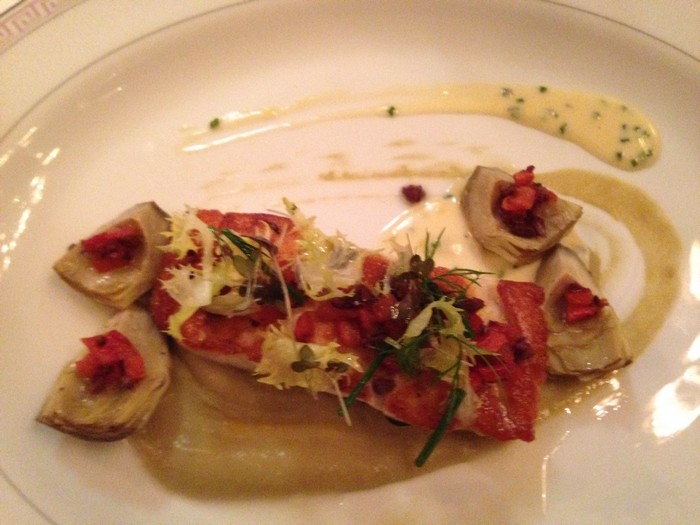 La proposta tra i secondi piatti parte con il pesce: il filetto di branzino di lenza arrostito con battuta di pomodori appassiti e carciofi, il rombo chiodato arrostito con asparagi e salsa di agrumi, il baccalà islandese con crema di patate, profumato al rosmarino e peperoni. Ma è tra le carni che la tradizione toscana dà il meglio con piccione di Montespertoli al vinsanto in vescica e frutta caramellata al timo, pollo razza bianca Valdarnese disossato alla cacciatora con funghi primaverili, cabezada di maialino iberico con crema di carote e cannella, cavolo nero e cipolline brasate, agnello da latte del casentino arrostito con crema di patate, peperoni capperi. Chi ama la carne può anche preferire un ricco piatto per due persone, una Chateaubriand di manzo con fois gras scottato e midollo gratinato.